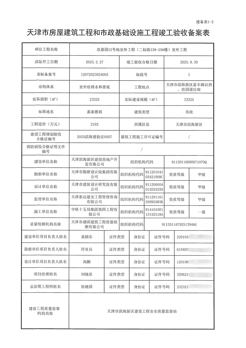 欣嘉园12号地室外工程(二标段12#-25#楼)室外工程竣工验收备案表