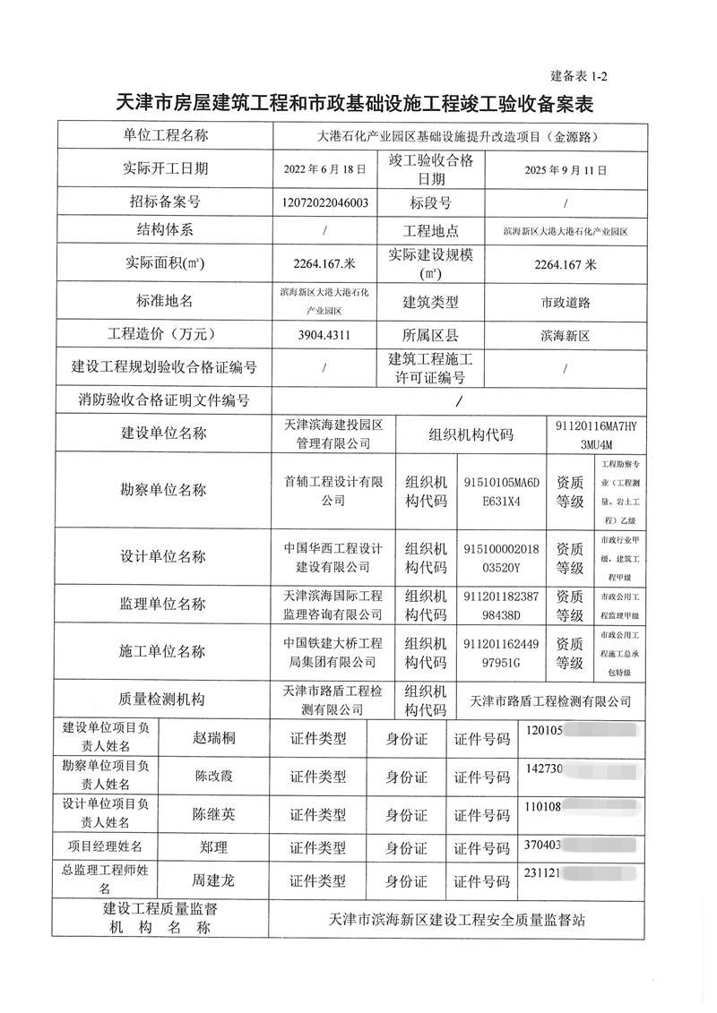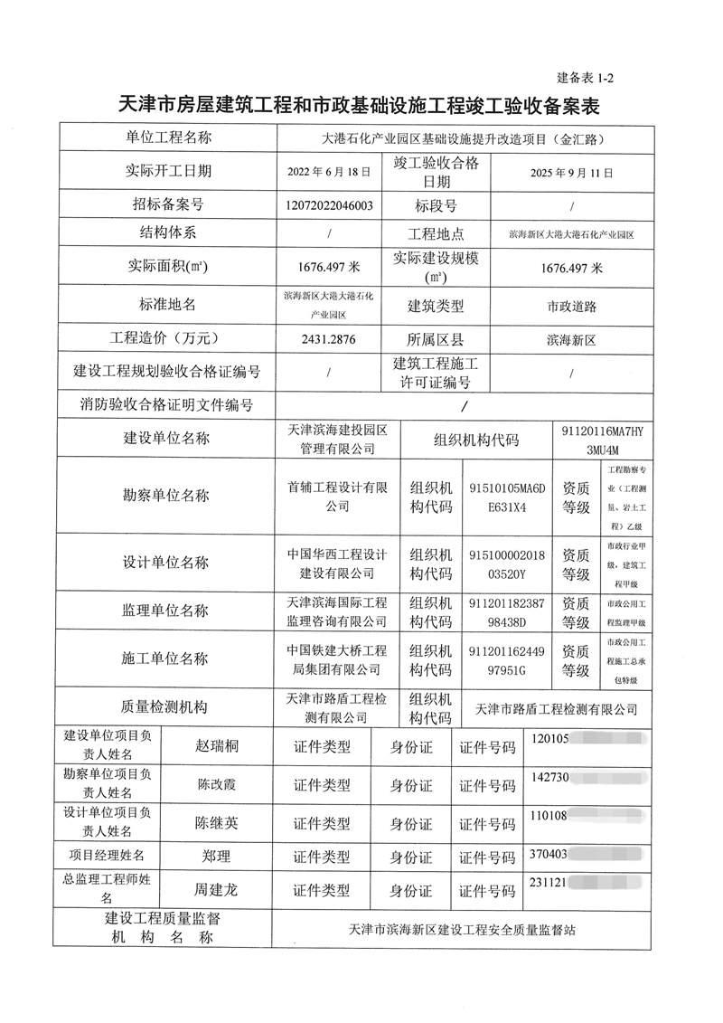 大港石化产业园区基础设施提升改造项目竣工验收备案表